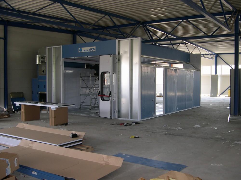 Dodávka a montáž 1 ks lakovací a vysoušecí kabiny typové řady PRESTIGE a 1 ks lakovací kabiny CONQUER atypických rozměrů u společnosti KAROSÁRNA OMARO s.r.o., Osek nad Bečvou. Realizace rok 2005.